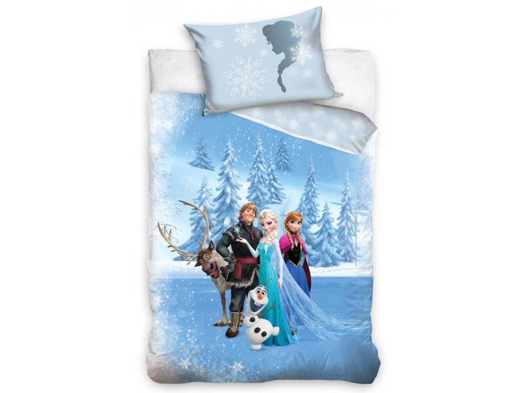 Gyermeklepedők az ágyhoz Elsával és Annával 100x135 és 40x60 méretben. A gyermeklepedők 100% pamutból készülnek, ami a legjobb dolog, amit gyermekének adhat. A pamut lapok jól felszívják az izzadságot, és nagyon légáteresztőek és egyben puhák. A lapokon kétoldalas nyomtatás található. A Frozen című animációs történet főszereplői a paplanhuzat elején állnak. A befagyott tavon áll a vidám hóember Olaf, a rénszarvas, Sven, Kristoff és Anna és Elza hercegnők. A paplanhuzat hátulja világoskék, rajta fehér hópelyhek. A párnahuzat mindkét oldalon egyforma, hópelyhekkel és szürke Elsa mellszoborral. A gyermeklepedők praktikus cipzárral zárhatók.