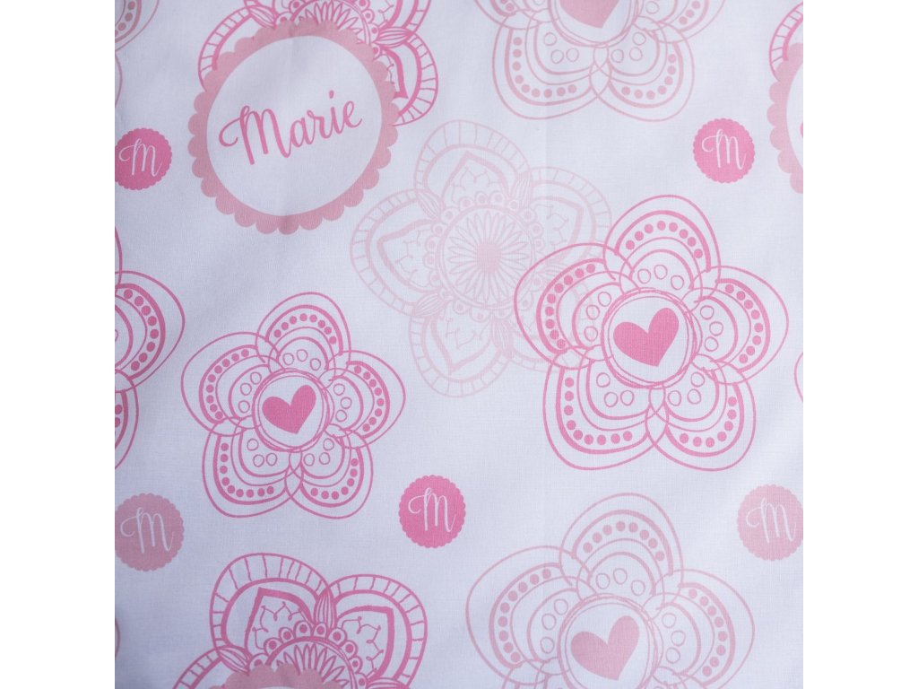 Akiságy lepedők 100% pamutból készültek, amely légáteresztő és gyengéd a baba bőréhez. A vidám nyomat mindkét oldalon más - az elején egy virág cica képével, a másik oldalon egy virág és egy szív fehér alapon. A kényelmes cipzáros zárás megkönnyíti a kiságy minden cseréjét.