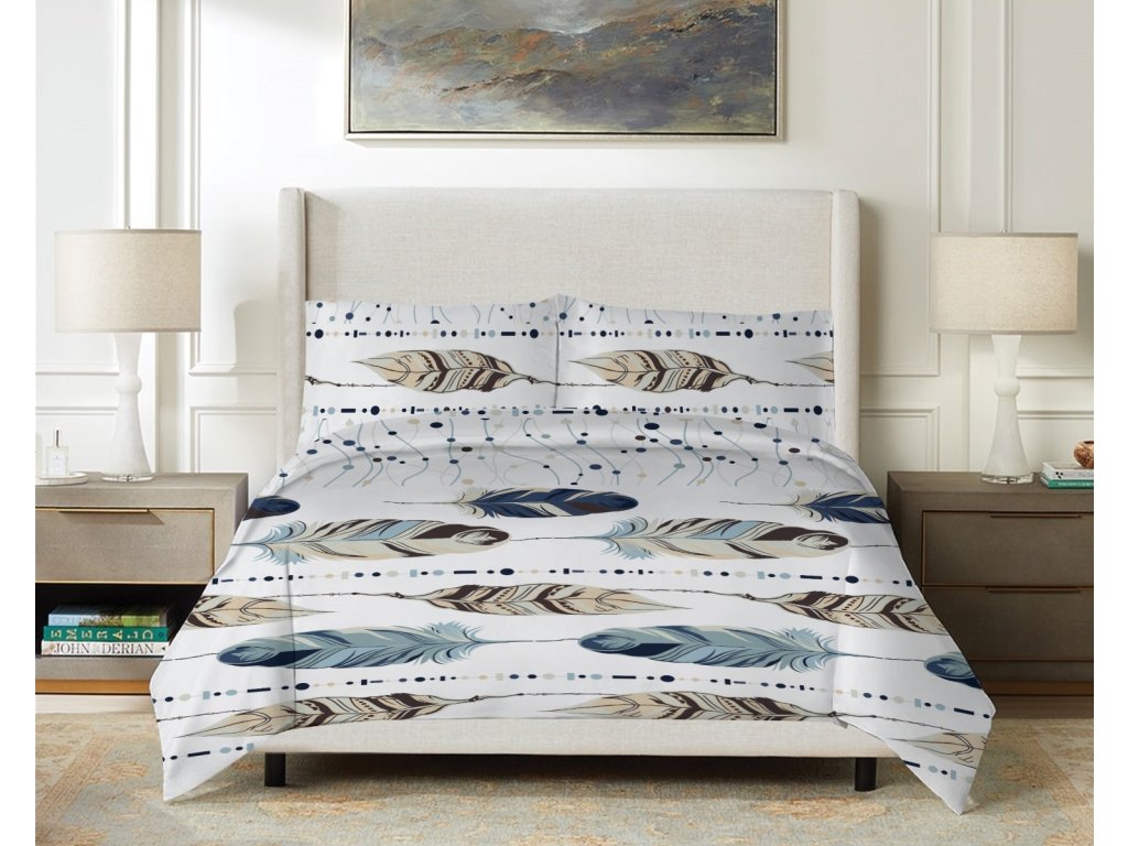 Exkluzív pamut szatén lepedők 140x200 + 70x90 cm - Boho toll