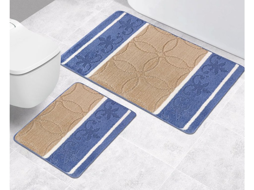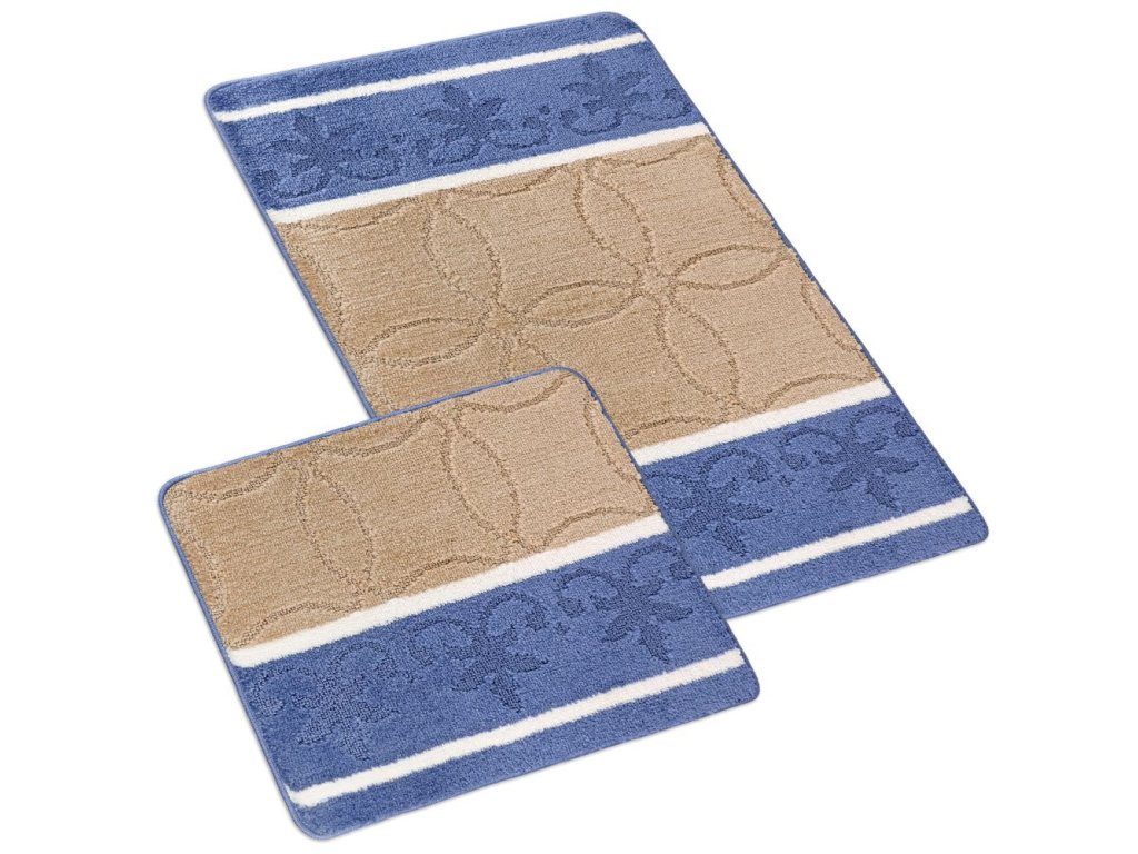 Kétrészes fürdőszobaszőnyeg 60x100 + 60x50 cm - Dísz kék bézs