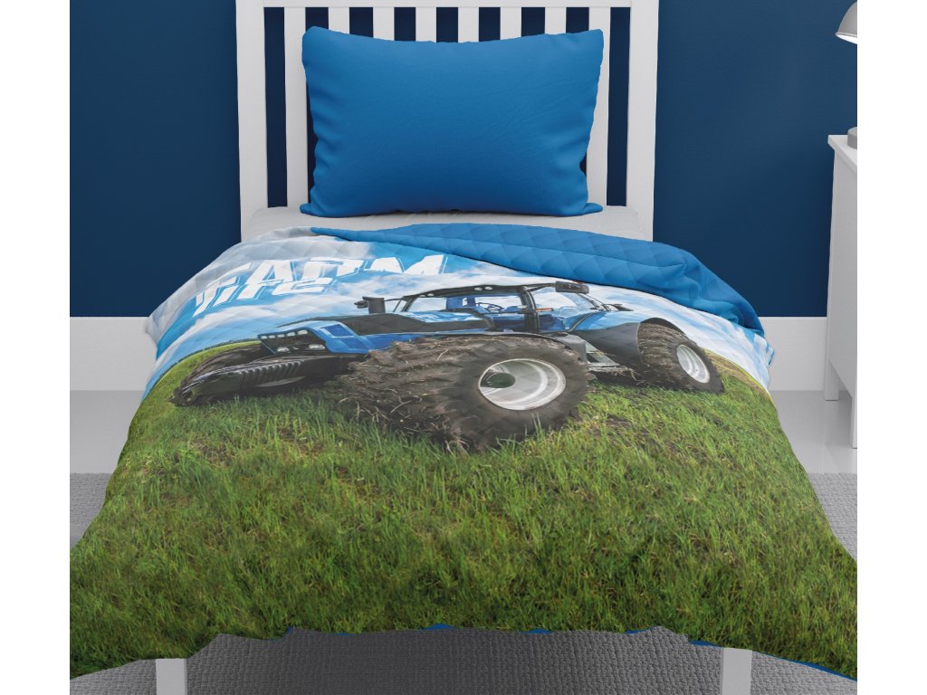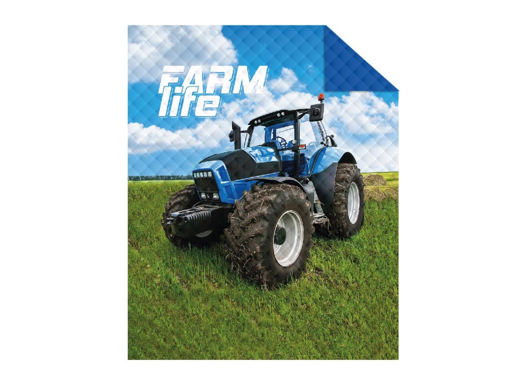 Elülső oldala a kék árnyalataiban traktor motívumú, a takaróhátsója sötétkék - együtt tökéletesen kiegészítik a szoba hangulatát. A 170×210 cm méret a legtöbb egyszemélyes ágyhoz illeszkedik.