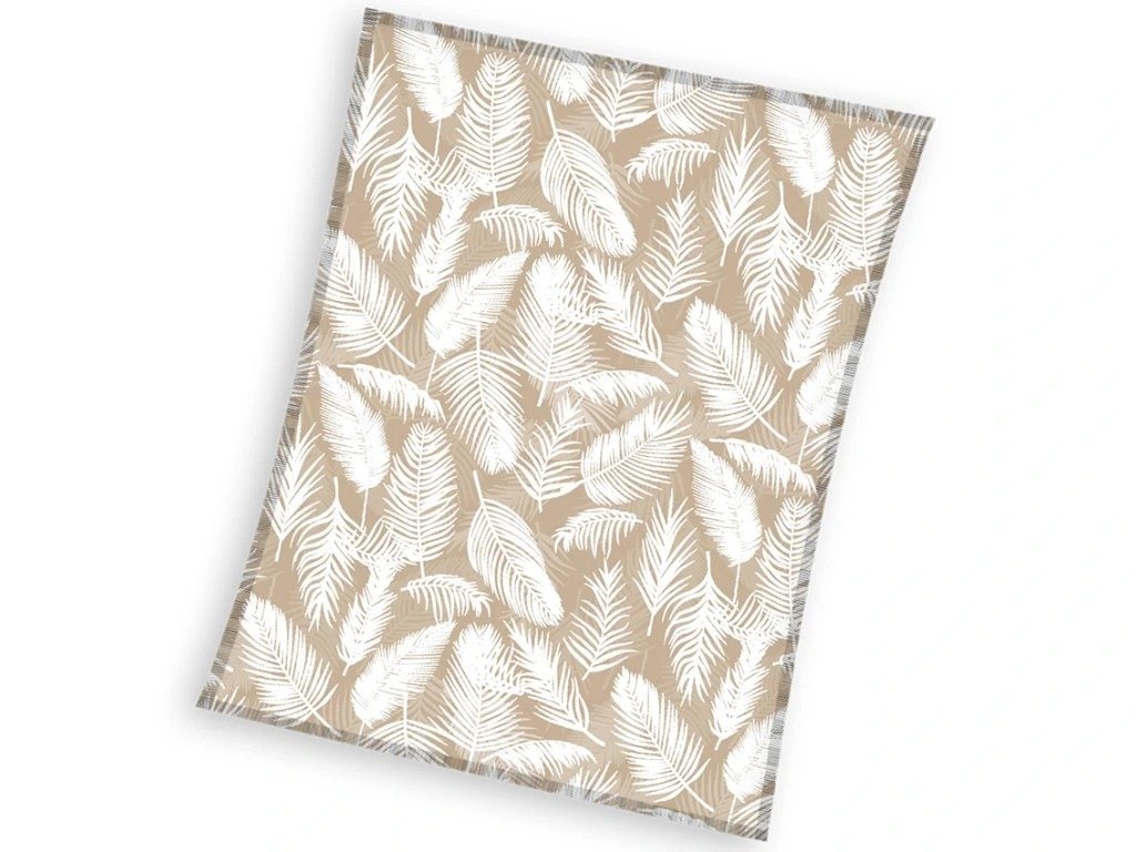 Nagyon kellemes bolyhos mikroplüss takaró bézs színű toll motívumokkal. A takaró 100% poliészterből készült, mérete 150x200 cm. Ennek a takarónak a súlya 300 g/m2. Felületenagyon puha és kellemes tapintású. Több mosás után semnem változtatja meg a színét, nem gyűrődik,ráncálló és továbbra is megőrzi formáját és megjelenését. A takaró dupla varrott szegéllyel bélelt. A mikroplüss anyagpuha és bársonyos megjelenésű rövid szálakkal, amelyek korallzátonyra hasonlítanak, innen ered a neve is. Ami a meleget illeti, a plüss takarók megtartják a hőt, és szigetelő réteget képeznek, ami azt jelenti, hogy a test közelében tartják a hőt.