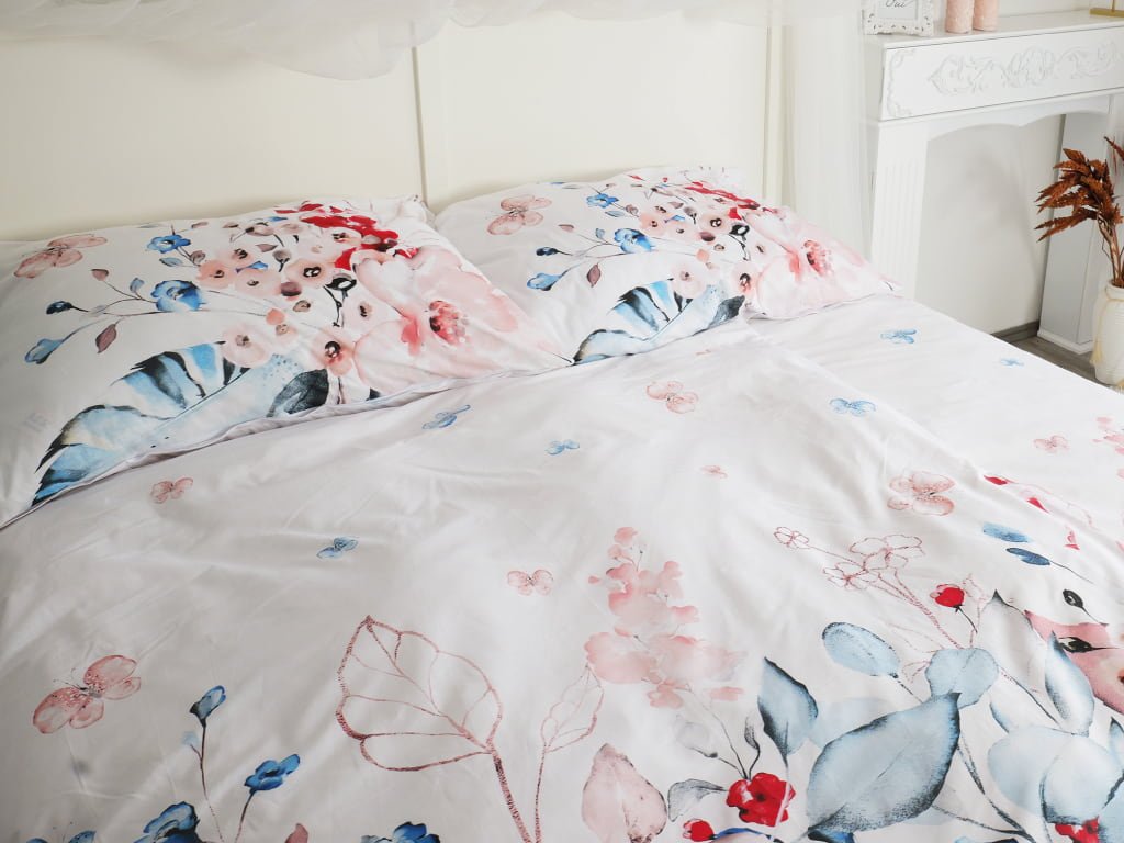 A virágos ágynemű 140x200 és 70x90 cm méretű, modern kivitelben. Az ágynemű elülső részén fehér alapon a fő motívum a huzat közepét kitöltő, különböző színű nagy és kis virágok. A pillangók kiegészítik az általános hangulatot. Az ágynemű szemközti oldalának teljes felületét is kitöltik. A párnahuzat szintén kétoldalas, színében és mintájában megegyezik a paplanhuzatéval. A paplanhuzat és a párnahuzat cipzáros. A kiváló minőségű pamut nagyon puha és kellemes tapintású. Ez vonatkozik az anyag szilárdságára és a későbbi mosással szembeni ellenálló képességére, aminek köszönhetően az ágynemű nem fakul ki, és a színek megőrzik színüket. Ha ehhez hozzáadjuk a cipzáros zárást és az eredeti dizájn használatát, akkor olyan terméket kapunk, amely a legigényesebb vásárlók elvárásainak is megfelel.