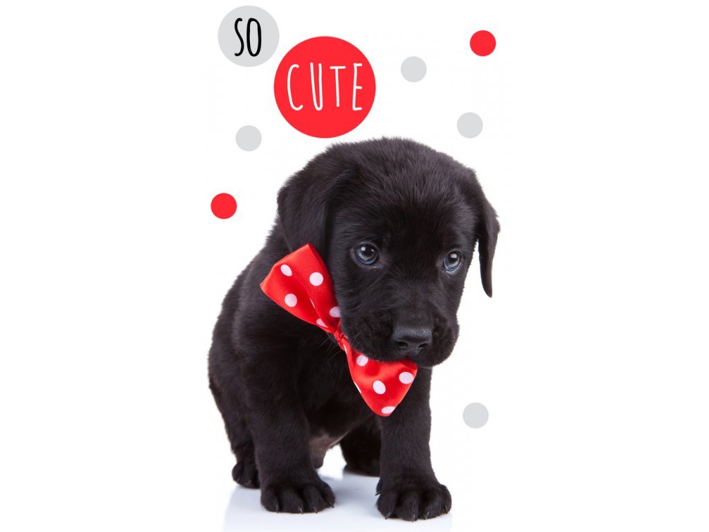 Gyerek frottír törölköző A Cute Puppy 100% pamutból készült. A kis fekete labrador kutyus nyakában piros csokornyakkendő, fehér pöttyökkel, így senkinek sem fog hiányozni, és a kutyus sem fog eltévedni. Az elülső oldal finoman vágott frottír velúrból készült, nagyon kellemes tapintású. A törölköző hátoldala sűrű szövésű frottír hurokból készült, amely garantálja a jó nedvszívóképességet.