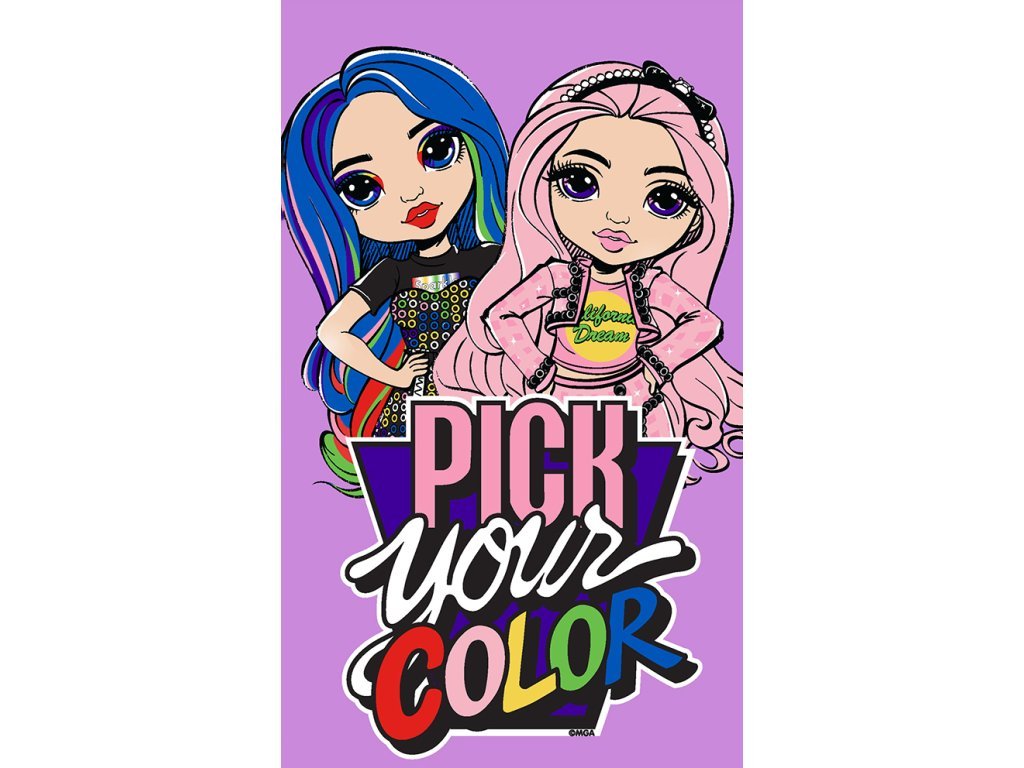 A törölköző alsó részén színes Pick Your Color felirat, a háttér pedig lila. ARainbow Dolls High Color Style törölközőt a méretének köszönhetően 30x50cm, utazás közben például a hátizsákba is bepakolhatod. A törülköző elülső oldala finomra vágott frottírból készült, velúr, tapintásranagyon kellemes. A hátoldalt egy sűrű szövésű fehér frottír hurok alkotja, amely garantálja a jó nedvszívó képességet.