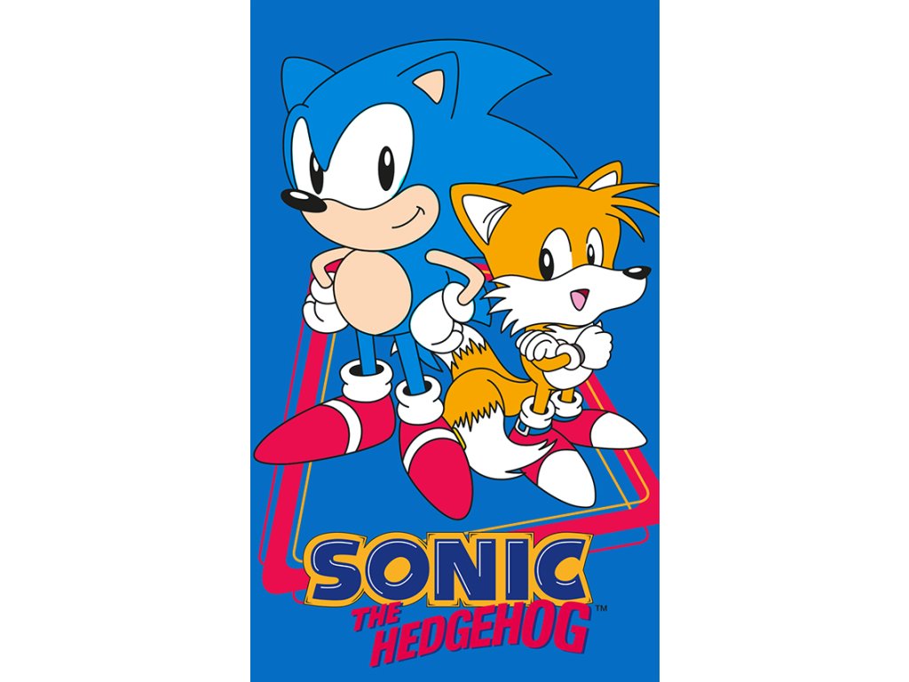 A gyerekeknek készült frottírtörölköző 100% pamutból készült. A törölköző elején a kék sündisznó Sonic, a narancssárga kétfarkú róka Tails valódi neve Miles Prower és Sonickal együtt harcolnak Dr. Eggman ellen. Sonic and Tails karakterét főleg videojátékokból, de képregényekből és filmekből is ismerjük.