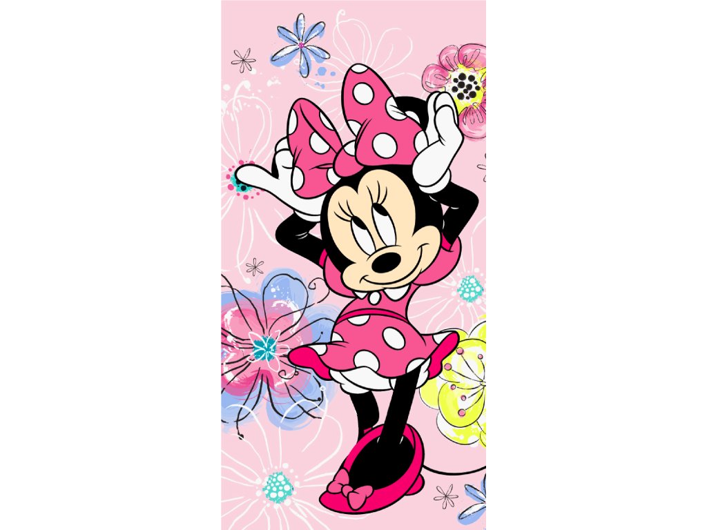 Kiváló minőségű pamut törölköző Minnie képével. A törölköző állandó színes nyomattal rendelkezik, mérete 70x140 cm.