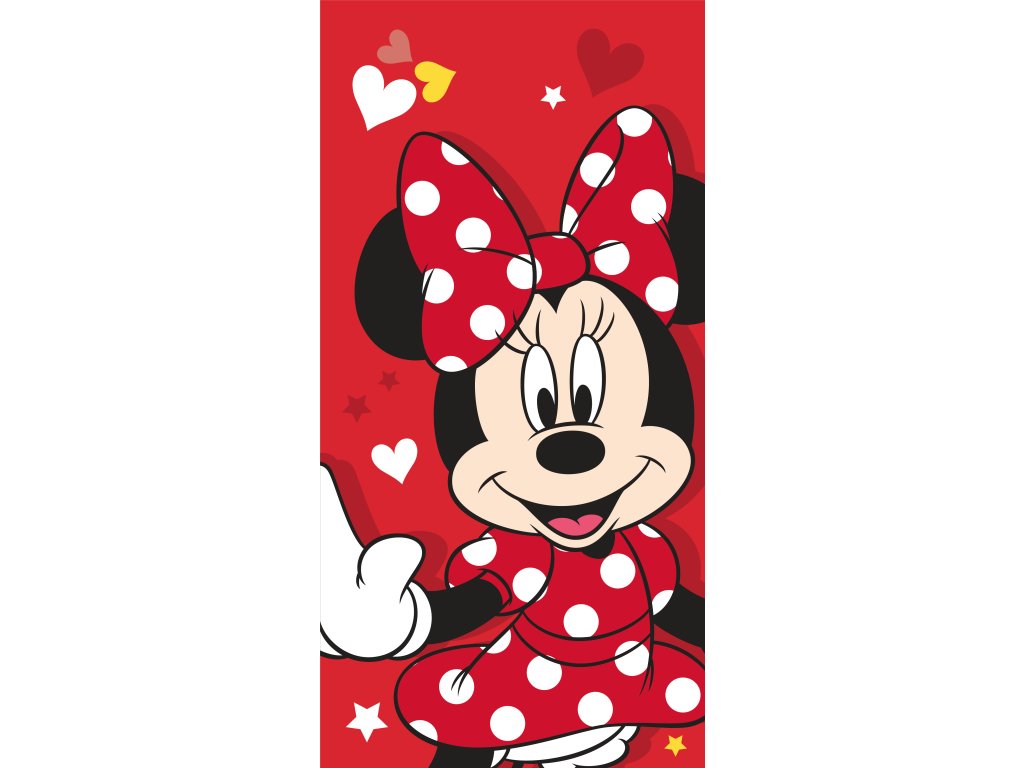 Minőségi pamut fürdőlepedő Minnie képével. A törölköző tartós színes nyomtatással rendelkezik, méretei 70x140 cm. A törülköző100% pamutból készült, 300 g/m2 tömegű nemzetközi Öko-Tex Standard egészségügyi tanúsítvánnyal rendelkezik. A törölközőt a fürdőben, nyáron pedig a strandon használhatod. Az anyag praktikus nedvszívó képességéhez kellemes íz és jó minőségű nyomat társul.
