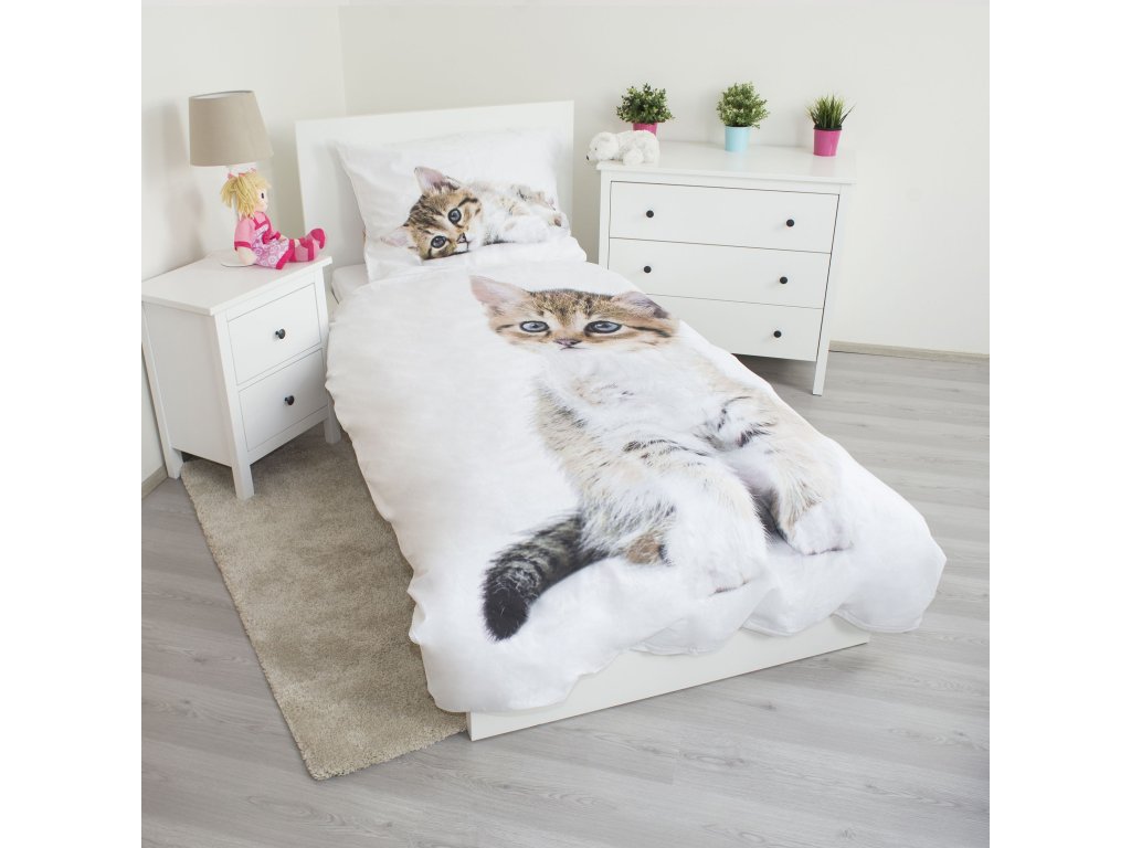 Pamut lepedő 140x200 + 70x90 cm - Cica fehér