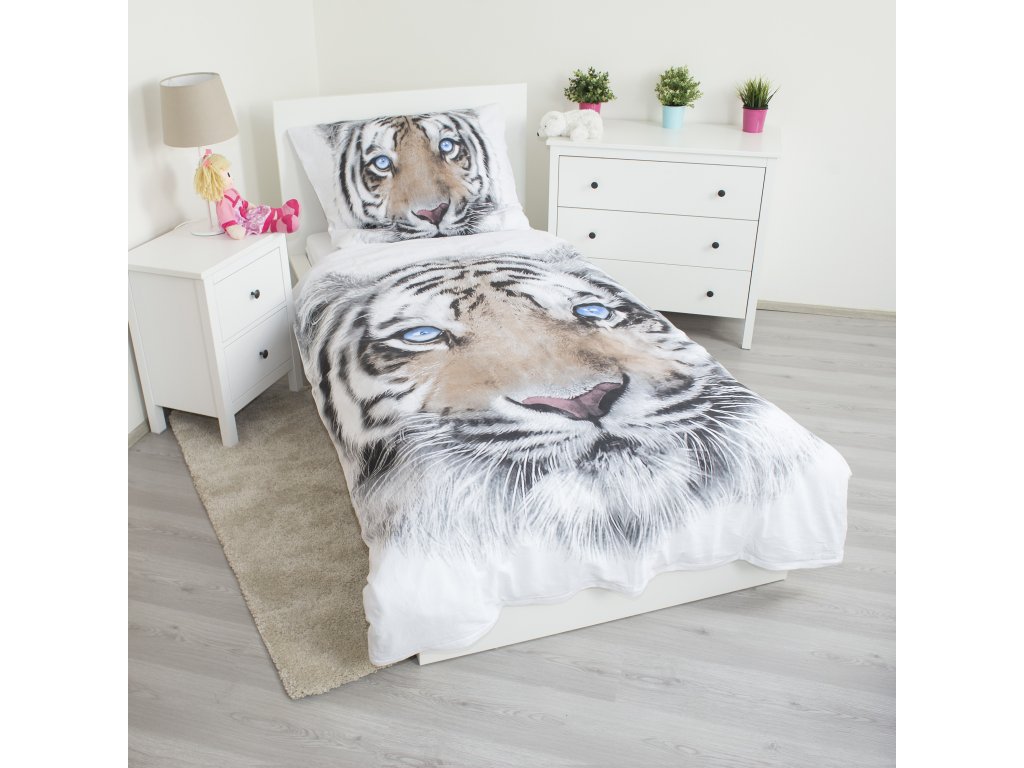 Pamut lepedő 140x200 + 70x90 cm - Fehér tigris