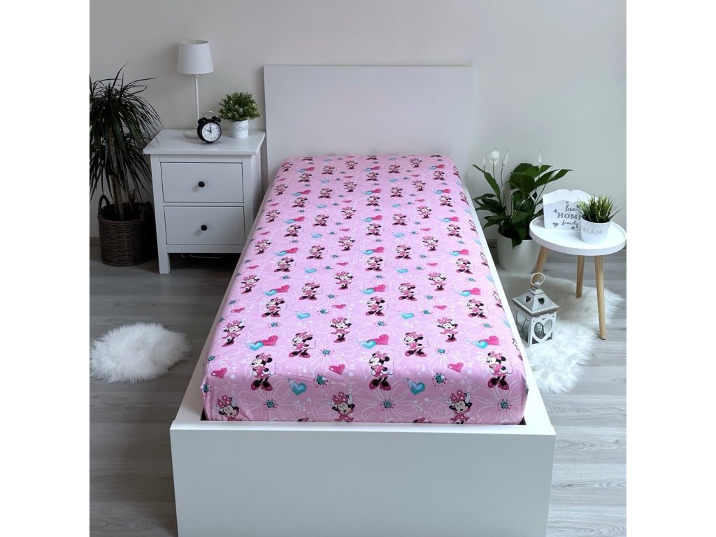 Pamut lepedő 90x200 + 25 cm - Minnie "Flowers 02"