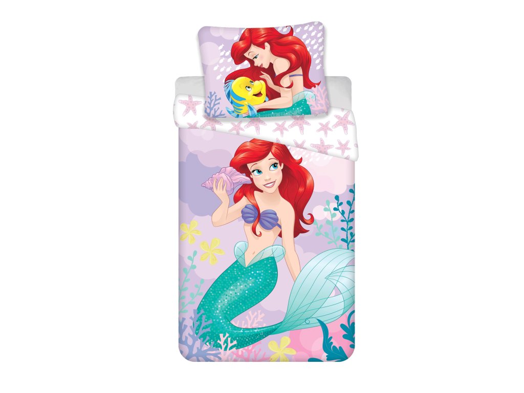 A színes gyermekágyneműk Ariel sellő figurájával gondoskodnak arról, hogy a hercegnő alszik, zavartalanul álmodjon. A gyermekágyneműk a klasszikus 140x200 és 70x90 cm-es méretben készülnek, és 100% pamutból készülnek, amelyet hosszú élettartam, színtartósság és minimális gyűrődés jellemez. Az anyukák minden bizonnyal értékelni fogják a praktikus cipzárt, amely időt takarít meg a paplancsere során.
