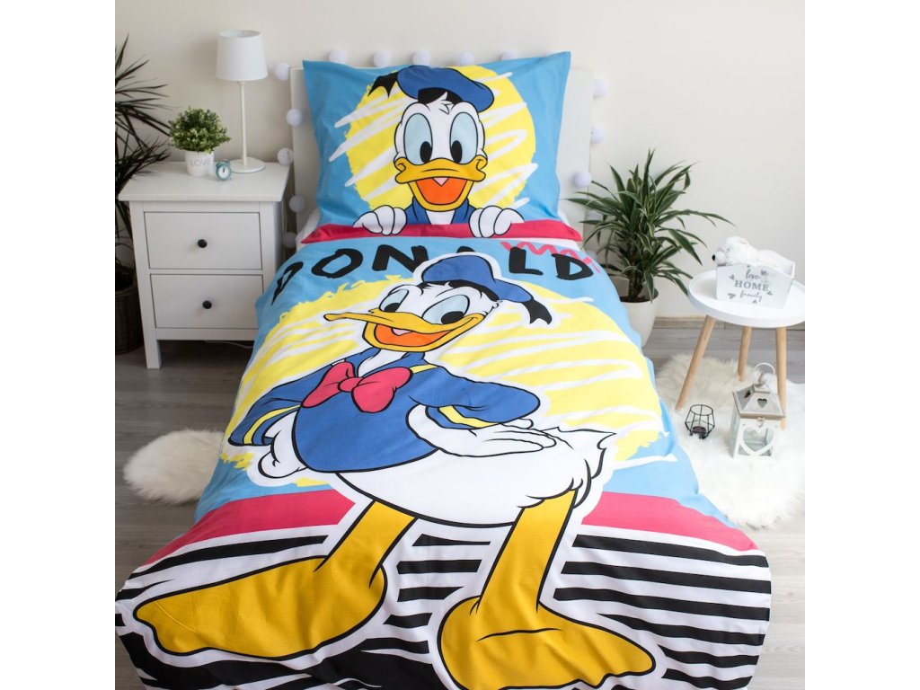 Gyermekágyneműk a kedvenc szereplővel, Donald Ducktal. Donald kacsa a Walt Disney rendező által 1934-ben készített animációs történetek és képregények hőse. Ezután más animációs történetekben kezdett szerepelni, különösen Miki egér, Goofy és Plútó, a kutya mellett. A Kacsamesék című sorozatban is feltűnt. Ő egy évelő esélytelenebb. Ezeken a lapokon viszont remek hangulatú tengerészként mutatja be magát nekünk. A 140x200 cm méretű lepedők gyönyörű kiegészítői lesznek a gyerekszobának. A100% pamutból készült lepedők kiváló légáteresztő képességet, puhaságot és hosszú élettartamot garantálnak. Az engedélyes lapokcipzárral vannak ellátva, ami különösen az anyák munkáját takarítja meg. A lapok nyomtatása oldalanként eltérő, így nem áll fenn a lapok elfáradásának veszélye.