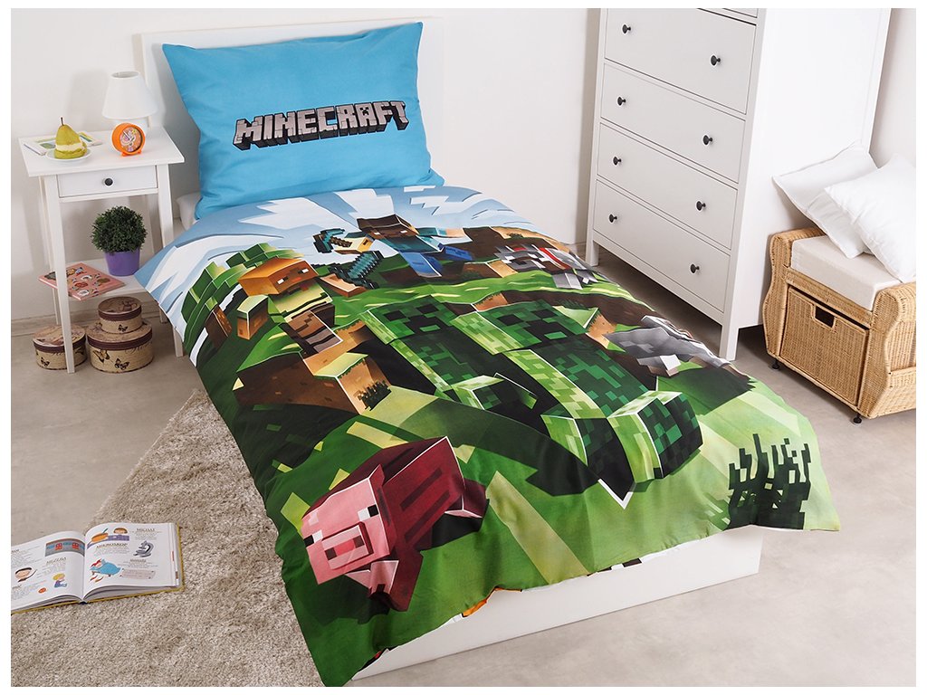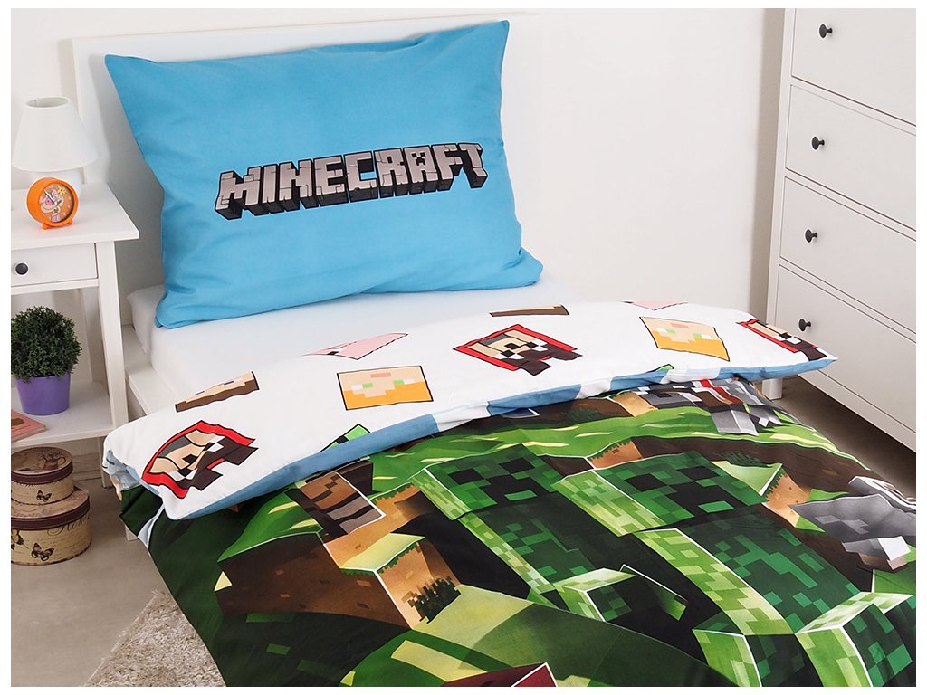 A Minecraft játék témájával ellátott, 140x200-as méretű gyermekágynemű a gyerekszoba gyönyörű kiegészítője lesz. A 100% pamut ágynemű kiváló légáteresztő képességet, puhaságot és tartósságot garantál. Az engedéllyel rendelkező ágynemű cipzárral van ellátva, ami különösen az anyukák munkáját takarítja meg. A lepedők mindkét oldalán más-más nyomat látható, így nem áll fenn annak a veszélye, hogy a baba belebetegszik a lepedőbe.
