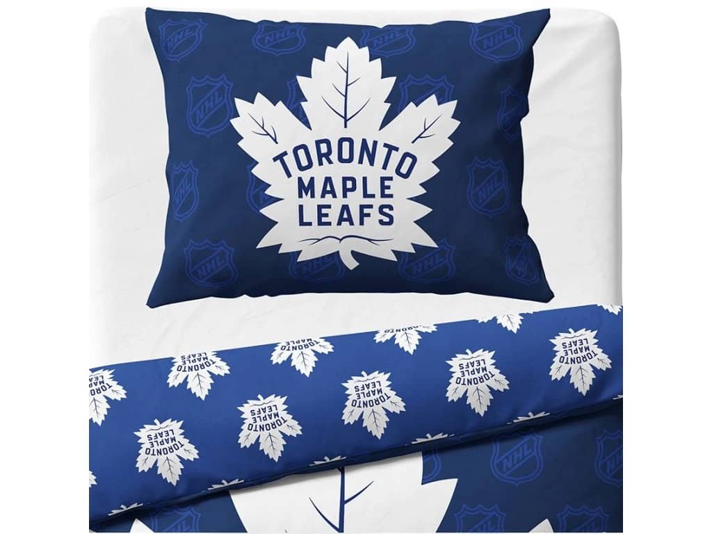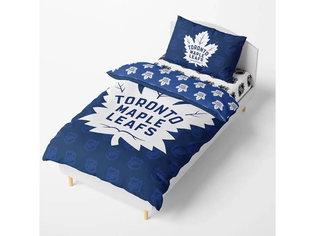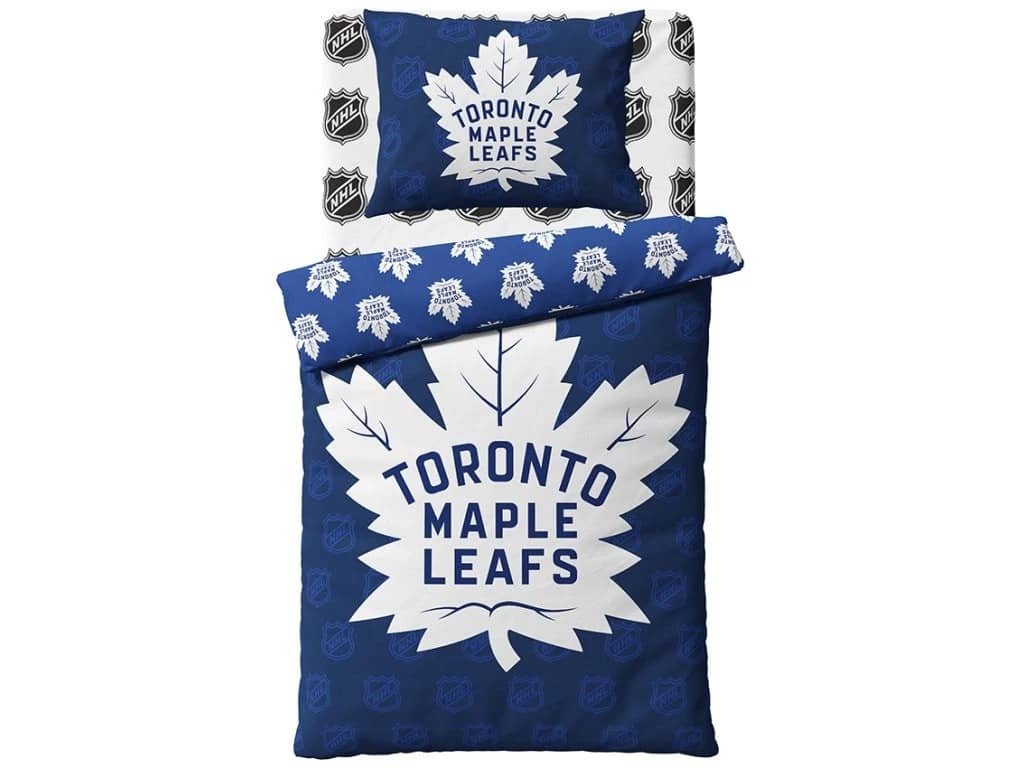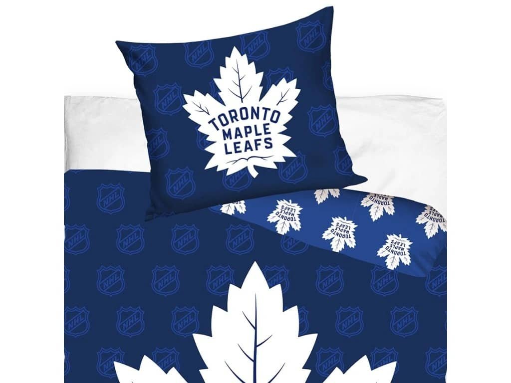 A pamut lepedők az igazi jégkorong-hangulatot hozzák egyenesen a hálószobádba! Egyedisége a részletekben rejlik, mint például a kis világoskék és az elegáns NHL-háttér borítója. A fedőlapot elegáns NHL-logók alkotják. fehér juharlevél jellegzetes klubjelképe, kék „Toronto Maple Leafs” felirattal. A hátoldalon, finom világoskék színben, az ikonikus jégkorongklubra jellemző, juharlevél formájában ismétlődő kis klublogók láthatók.