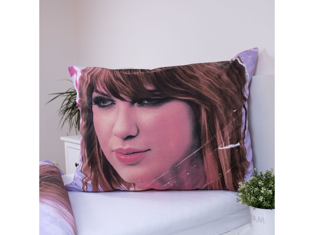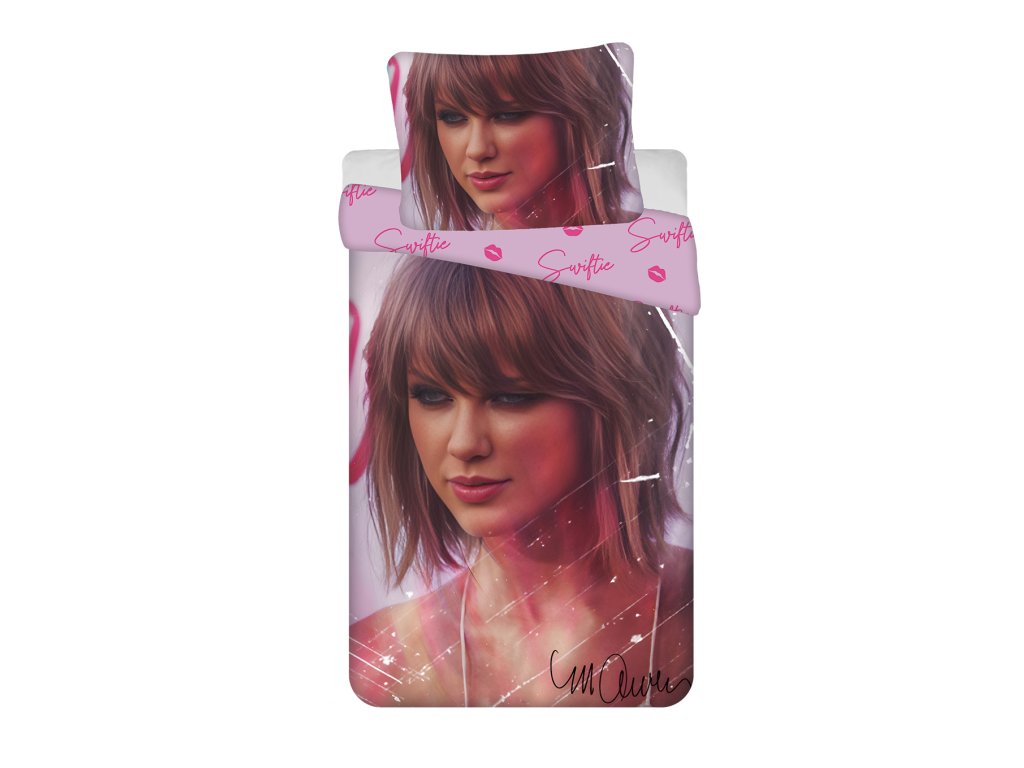 Az ágyneműk mindkét oldalára nyomtatottak – mindegyik oldalon más-más motívum található, aminek köszönhetően könnyedén megváltoztathatja az ágy kinézetét hangulatának megfelelően. A lap elülső részén Taylor Swift arca látható. Hátsó rózsaszín színű az ő autogramjának és tollainak motívumai.