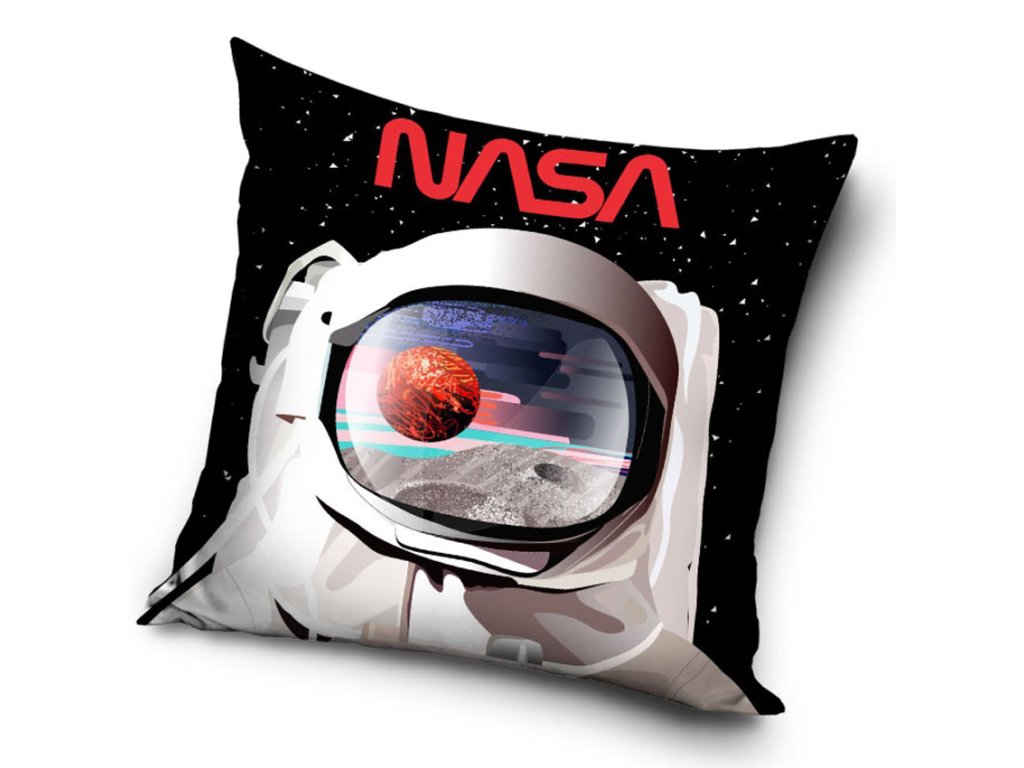 A kozmonautika és az űrkutatás minden szerelmese örülni fog, ha ajándékba kap egy NASA párnahuzatot. A lap fekete hátterén az űrben lebegő űrhajós látható. A tetején az Egyesült Államok Légierejének és Űrügynökségének, a NASA-nak egy nagy logója.