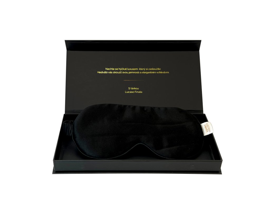 - Az alvómaszk fekete díszdobozba van csomagolva.