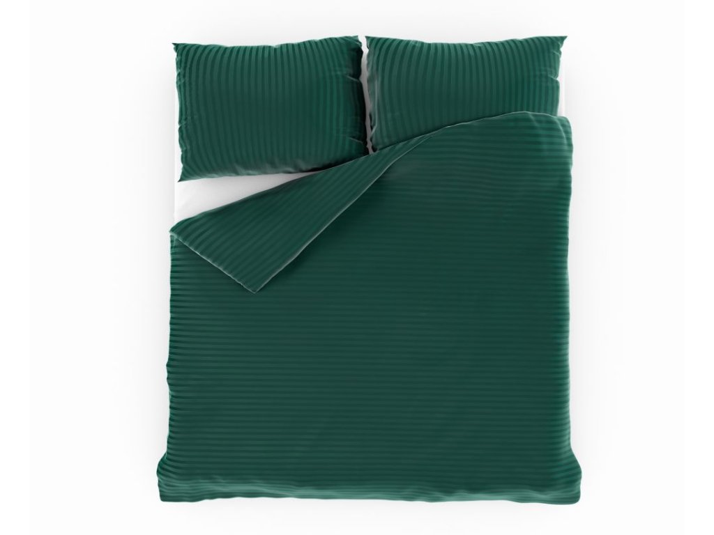 Szatén lepedők csíkos 140x200 + 70x90 cm - Sötétzöld