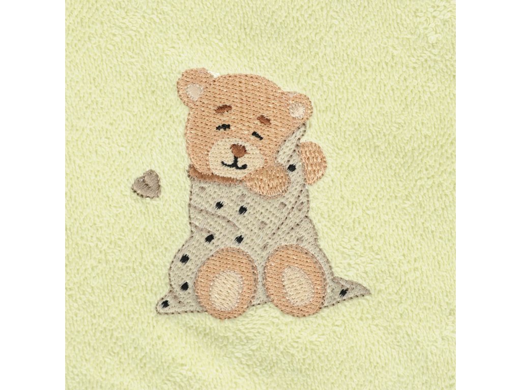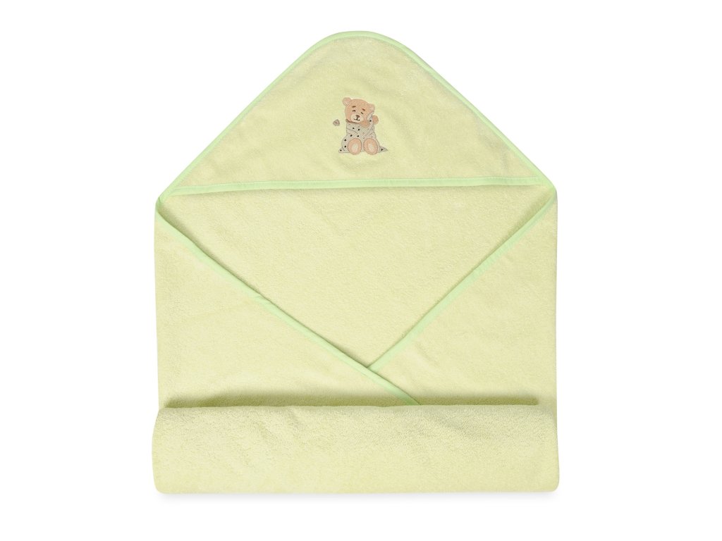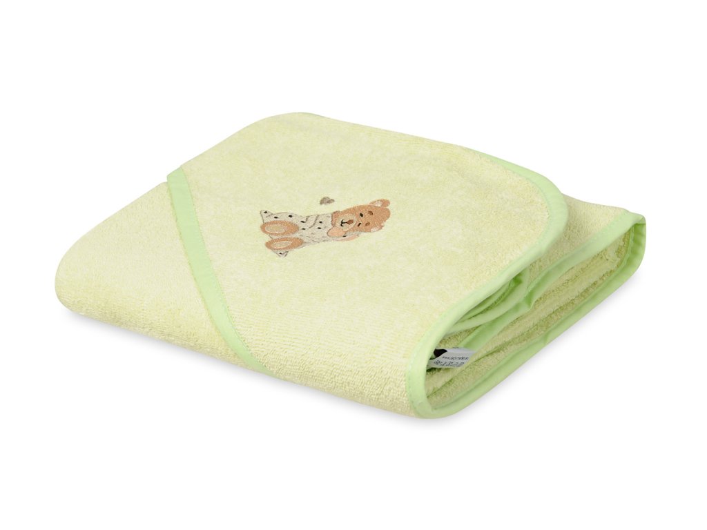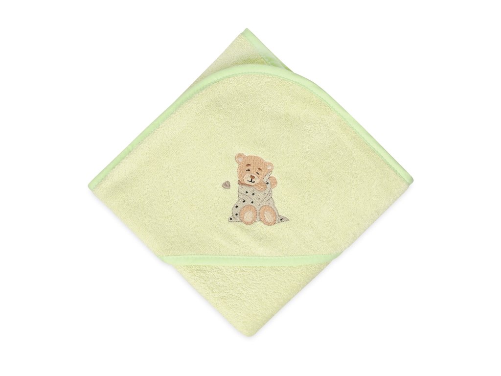 Ez a törölköző puha frottírból készült, amely nagyon kellemes tapintású. A törölköző alkalmas a baba érzékeny bőrére, nagyonjól beszívódik, alaposan kiszárítja a babát, a kapucni pedig védi a baba nedves fejét a megfázástól. Egy kis mackó gyönyörű hímzésével díszítve.