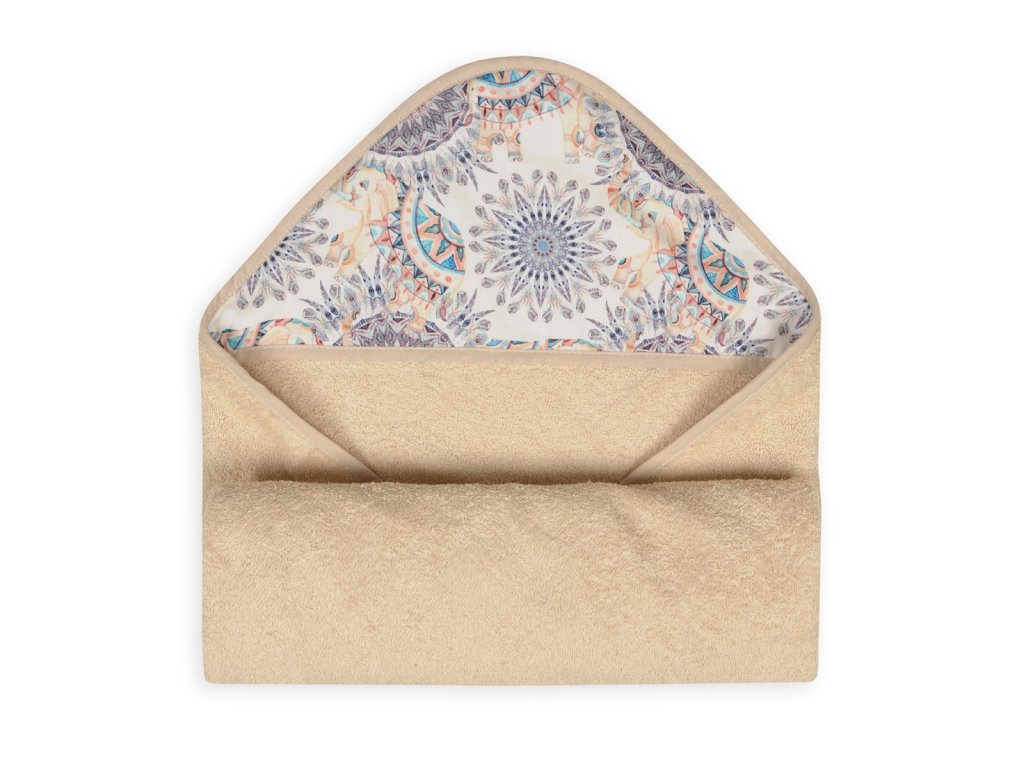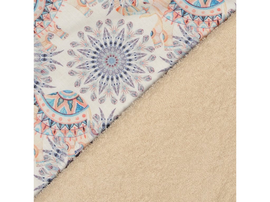 Ez a törölköző puha frottírból készült, amely nagyon kellemes tapintású. A törülköző a gyermek finom bőrének megfelelő, nagyonjól beszívódik, alaposan szárítja gyermekét, a kapucni pedig megóvja a gyermek nedves fejét a megfázástól. A kapucnit álomfogó motívum díszíti.