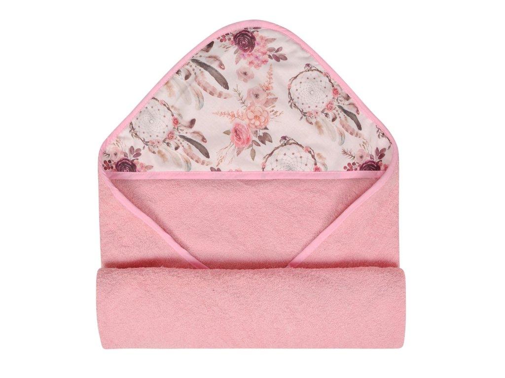 Törülköző kapucnival MAXI PRINT 100x100 cm - Rózsaszín