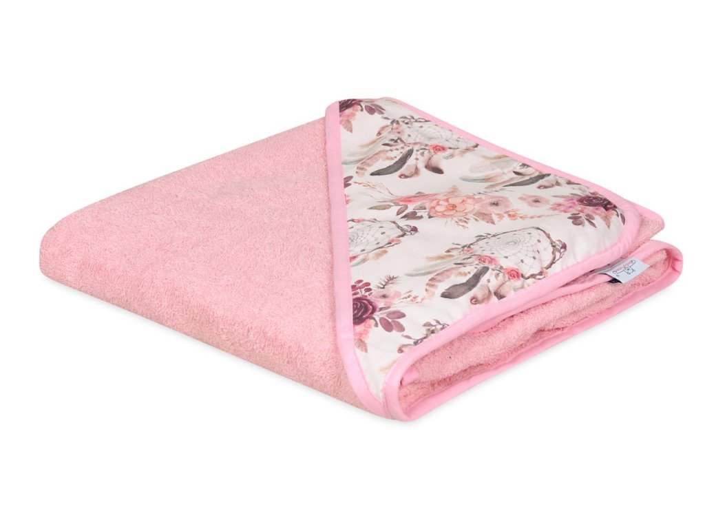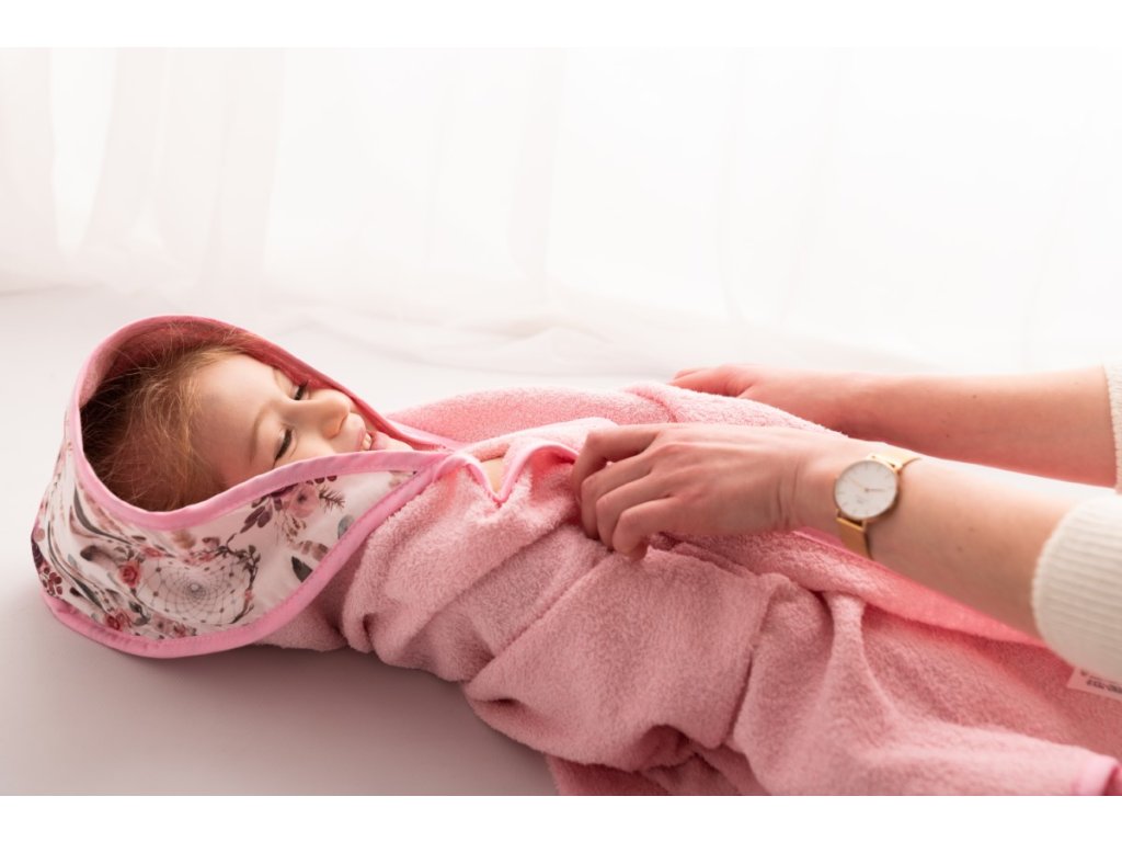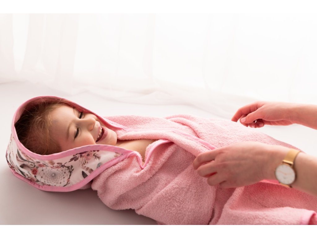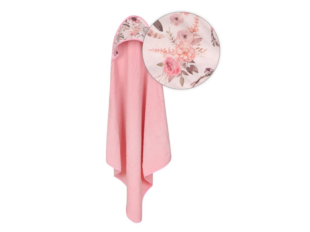 Ez a törölköző puha frottírból készült, amely nagyon kellemes tapintású. A törölköző a gyermek érzékeny bőrének megfelelő, nagyonjól beszívódik, alaposan megszárítja gyermekét, a kapucni pedig megóvja a gyermek nedves fejét a megfázástól. A kapucnit színes virágok díszítik.