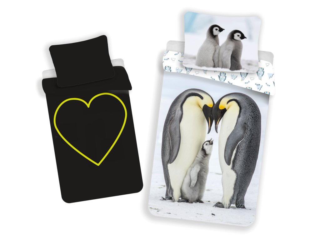 Világító hatású pamut lepedők 140x200 + 70x90 cm - Pingvinek