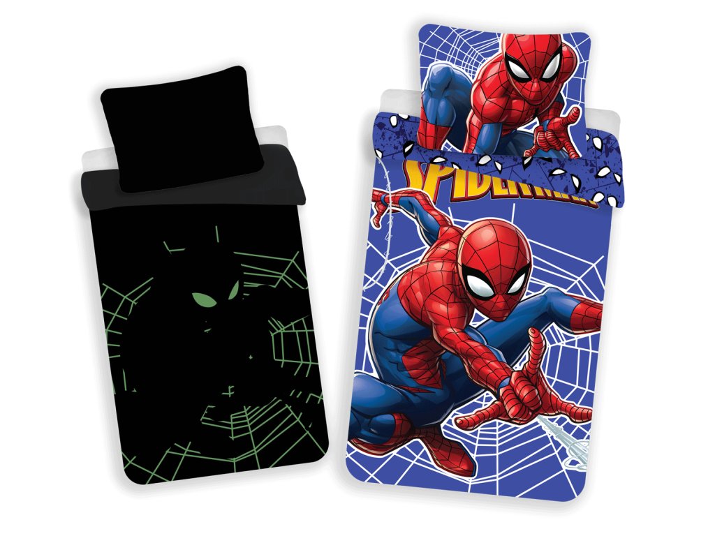 Világító hatású pamut lepedők 140x200 + 70x90 cm - Pókember