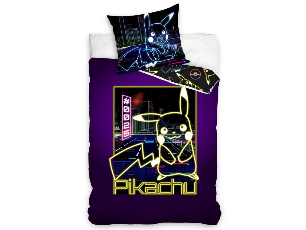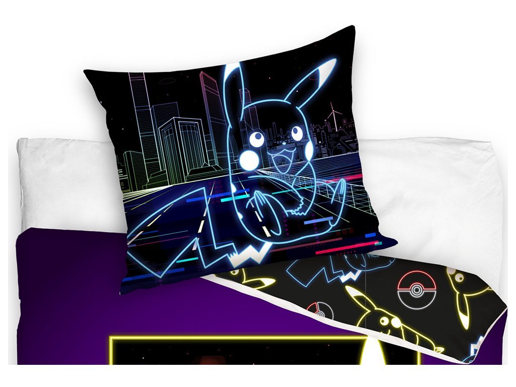 Világító hatású pamut lepedők 140x200 + 70x90 cm - Pokemon Pikachu neon show